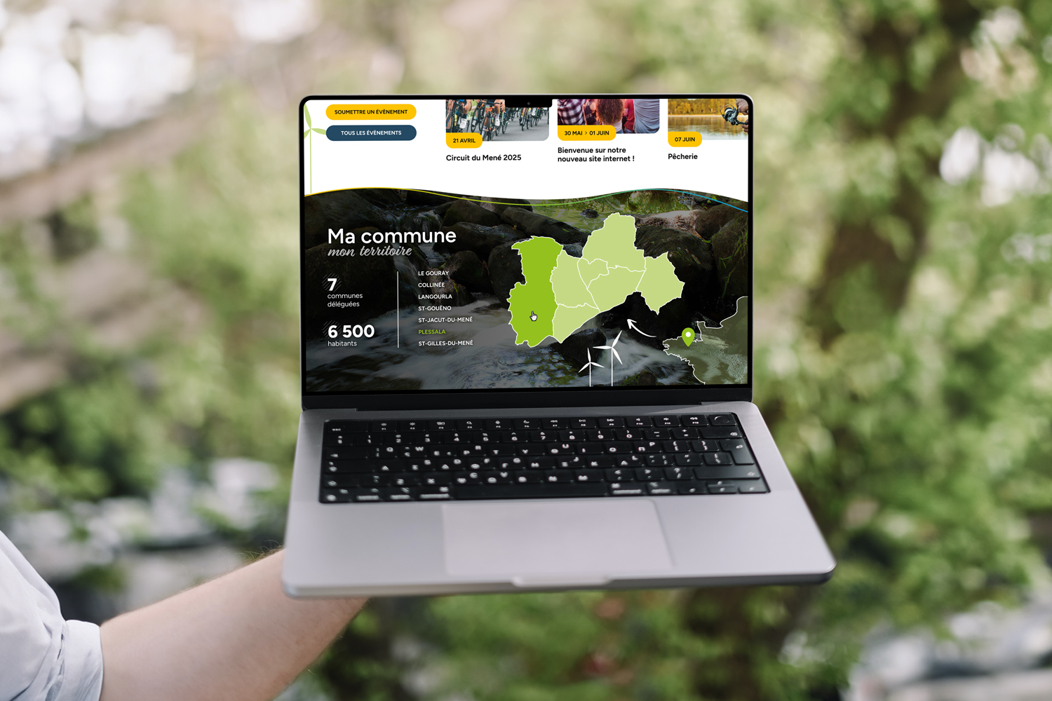 En arrière-plan, une photo de la Rance illustre le cadre naturel et vivant du Mené, renforçant l’ancrage local et l’identité commune. Un outil à la fois pratique et symbolique, qui associe information et découverte.